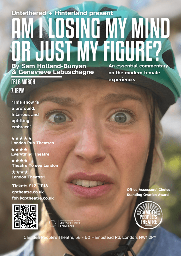 Throughout 2026 Hinterland will be building on the shows that we launched in 2025. The first of these will be in March at Camden People’s Theatre in collaboration with Untethered with Offie Assessors’ Choice and London Pub Theatres Standing Ovation nominated Am I Losing My Mind Or Just My Figure? Building on its success at Camden Fringe the show will form part of SPRINT Festival, one of the most exciting platforms for bold new writing and cutting-edge performances in London, prior to a week’s run at award winning The Bridge House House Theatre before heading to Edinburgh Fringe in August. Filming commenced on a screen version of Am I Losing My Mind Or Just My Figure? at the end of 2025 with Sam Holland-Bunyan (Director), Genevieve Labuschagne (Actor), Joseph Kennedy (Cinematographer) and Tabby Bunyan (Designer).